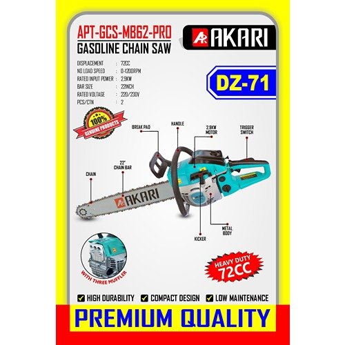 Akari 22 Inch Gasoline Chain Saw 72Cc 550Mm Aptgcsmb62Pro