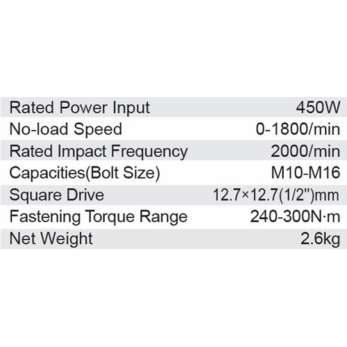 Dongcheng 1/2” Square Drive Impact Wrench 450W 300 N*M Dpb16