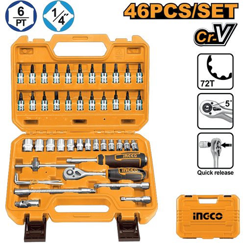 Ingco 1/4” Square Drive 46 Pieces Hex Socket Set Hkts14462