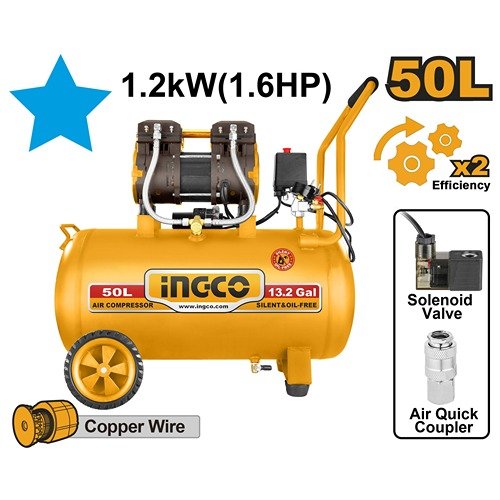Ingco 1200W Oil Free Air Compressor 50Ltr Acs112501