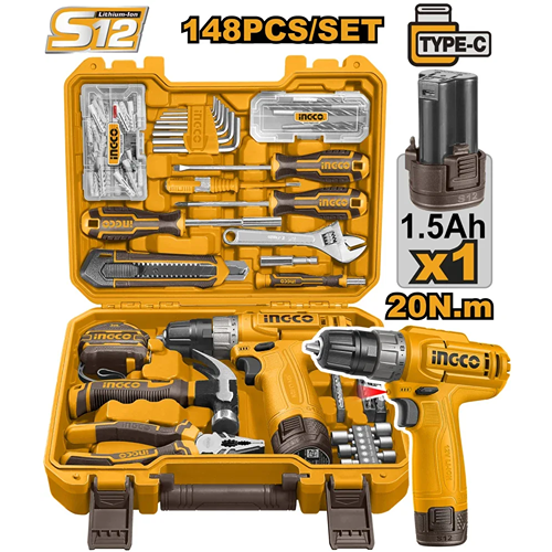 148 Pcs Tools Set 1 Pcs 12V Cordless Drill(Cdli12456) Voltage:12V No-Load Speed:0-750Rpm Max Torque:20Nm Plastic Chuck Chuck Capacity:0.8-10Mm Torque Settings:15+1 1Pcs 1.5Ah Battery Pack(Fbli12153) Battery Charging Port: Usb Type-C Include: